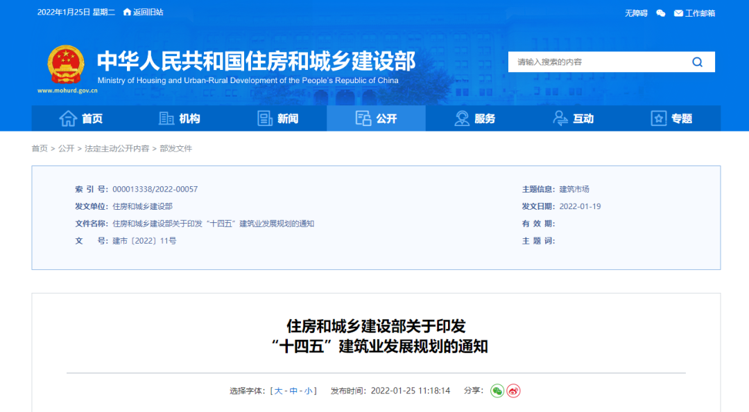 今日,住建部發(fā)布《關(guān)于印發(fā)“十四五”建筑業(yè)發(fā)展規(guī)劃的通知》,提出發(fā)展目標及主要任務(wù)等。