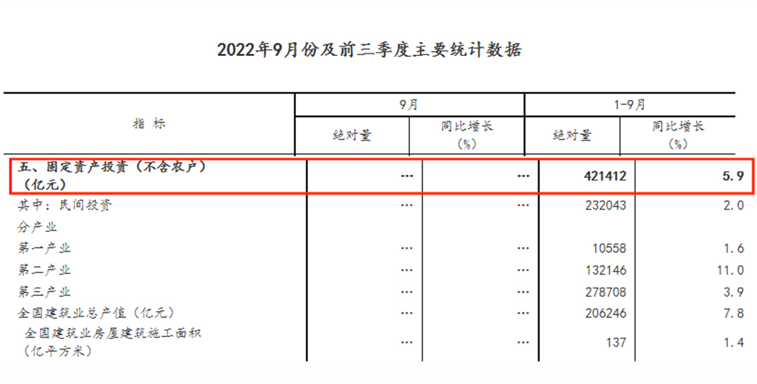 前三季度,全國固定資產(chǎn)投資(不含農(nóng)戶)421412億元,同比增長5.9%。其中,民間固定資產(chǎn)投資232043億元,同比增長2.0%。
