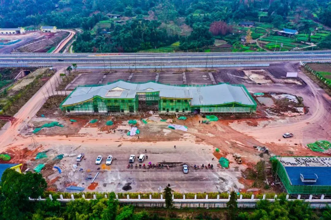 沐川服務(wù)區(qū)分為A、B兩個區(qū)域,截止到2022年4月底,兩個區(qū)域的房屋、附屬設(shè)施等主體建設(shè)和砌筑施工已完成,室內(nèi)外的裝飾裝修工程基本完成,剩余室外場平附屬工程接近尾聲,預(yù)計(jì)5月底完工,達(dá)到交付使用條件。