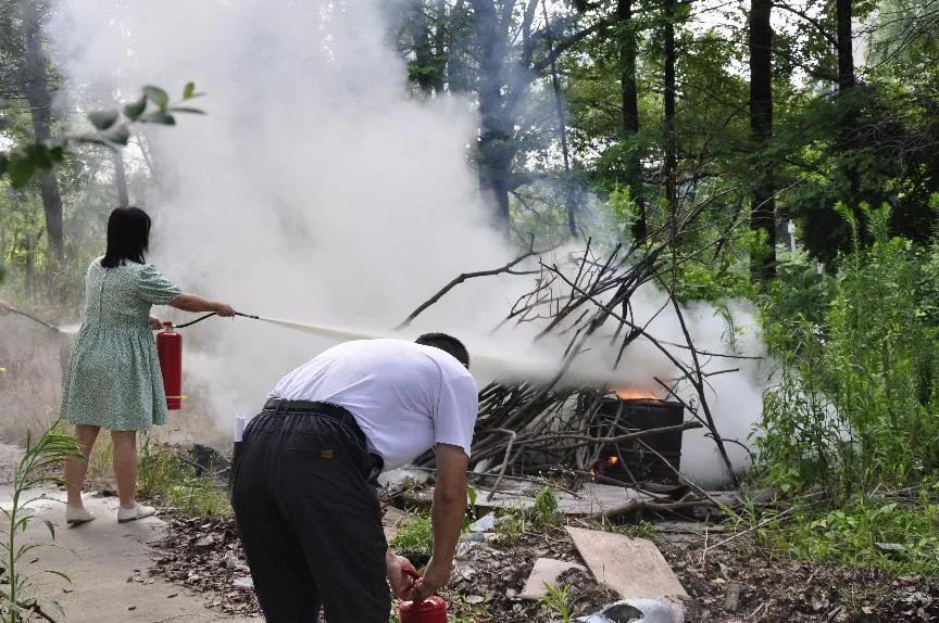 安全生產理論培訓結束后,余敏老師還帶領培訓人員進行了消防演練并講解了使用滅火器的動作要領及注意事項,并做了示范。隨后參與演練的人員依次上場體驗現(xiàn)場滅火的過程,面對熊熊燃燒的火堆,大家表現(xiàn)的十分沉著,按照李老師講解的滅火步驟和方法,將燃起的大火迅速撲滅。