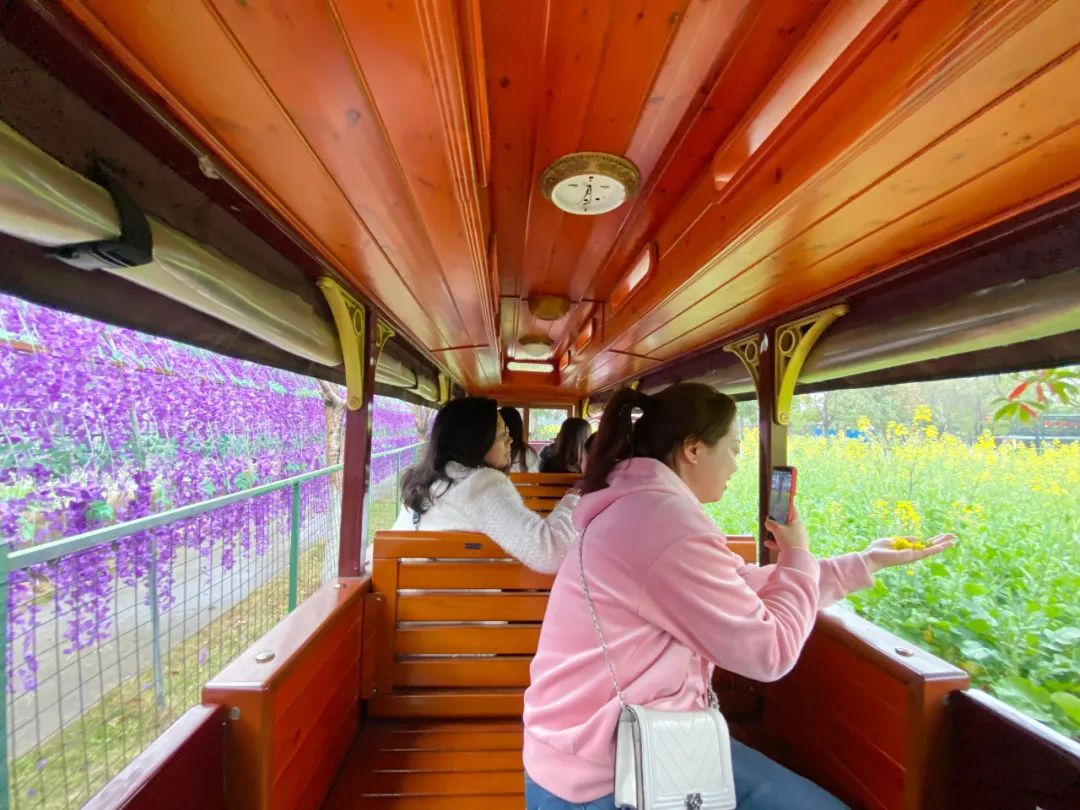 坐上小火車,沿著鐵軌,穿越油菜花海,感受春風(fēng)、鳥語(yǔ)和花香。