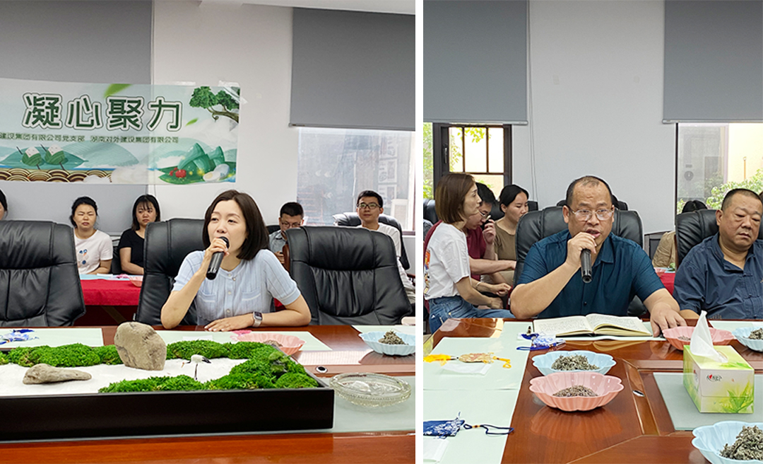 “五月五,過端午,艾葉香,香滿堂。”為進(jìn)一步弘揚(yáng)民俗文化,提升公司員工凝聚力,6月20日,中共湖南對(duì)外建設(shè)集團(tuán)有限公司支部委員會(huì)聯(lián)合公司行政管理部共同舉辦了“品味端午,凝心聚力”主題活動(dòng)?;顒?dòng)由行政管理部負(fù)責(zé)人任瑋主持,祥峰集團(tuán)全體員工、湖南外建總部員工、長沙項(xiàng)目部分員工代表共同參與了此次活動(dòng)。